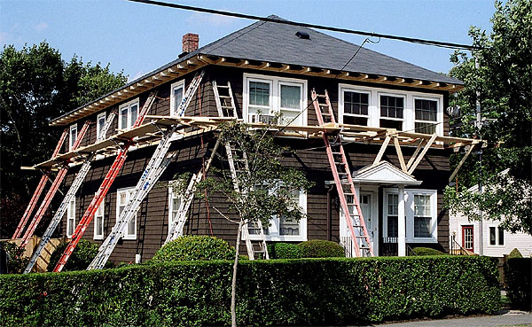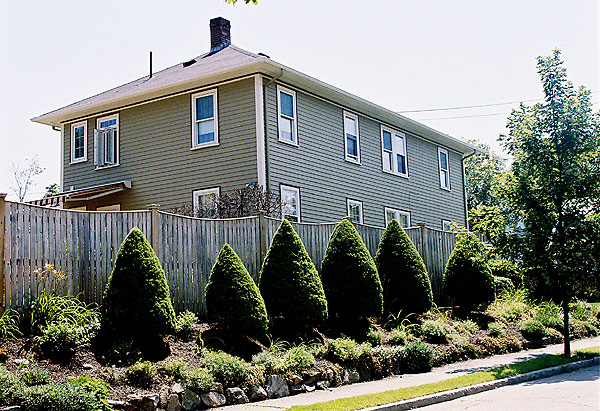 In the home pictured below, Vazquez Contracting removed the existing damaged wood shingles from the entire house and replaced with new clapboard siding. In addition, new soffit, fascia and gutter were installed.