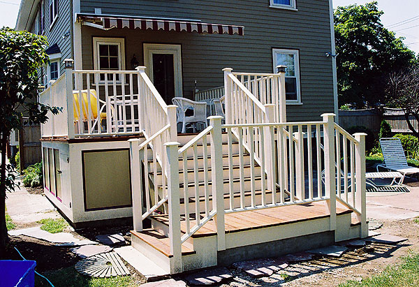 The house was completely repainted with contrasting colors to match the detailing on the new window trim, new deck, and new soffit & fascia.
